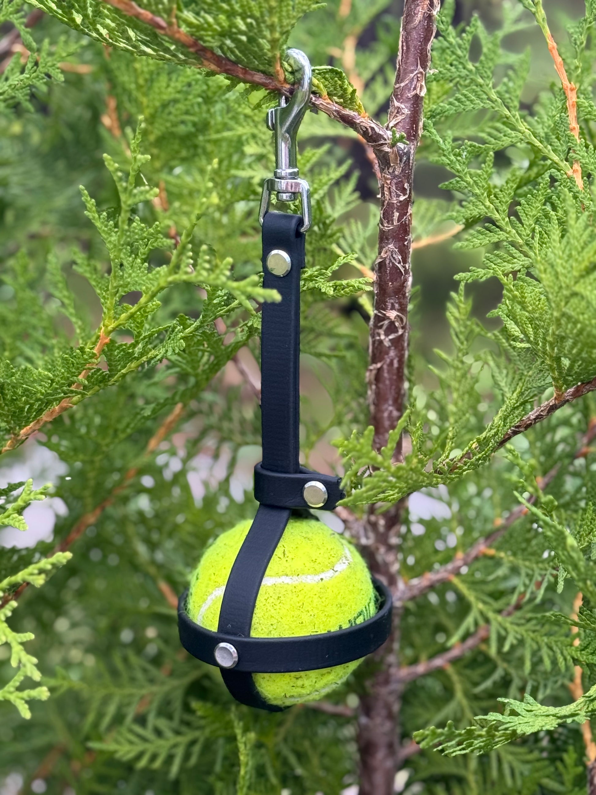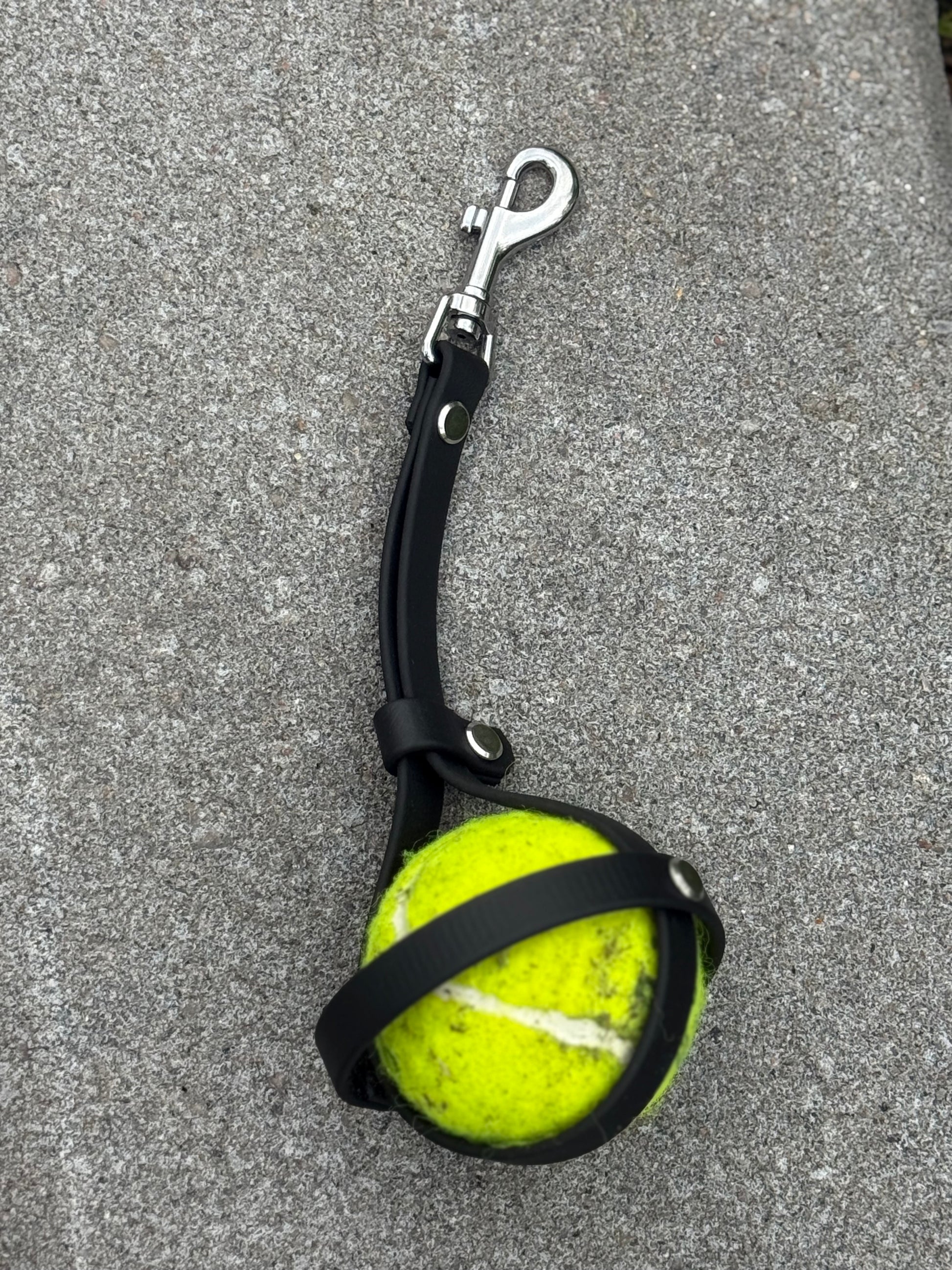 Håll hundens favoritboll nära till hands på promenaden! Vår bollhållare är tillverkad i slitstarkt och vattentåligt material som enkelt fästs på kopplet, väskan eller bältet med en karbinhake. Den håller bollen på plats tills det är dags för lek och gör det smidigt att alltid ha den redo. Perfekt för både träning, lek och vardagliga promenader.
