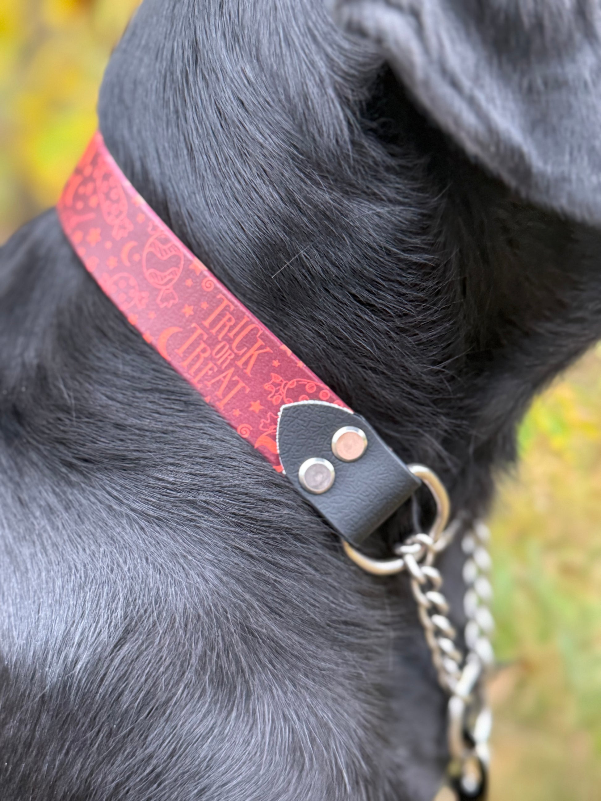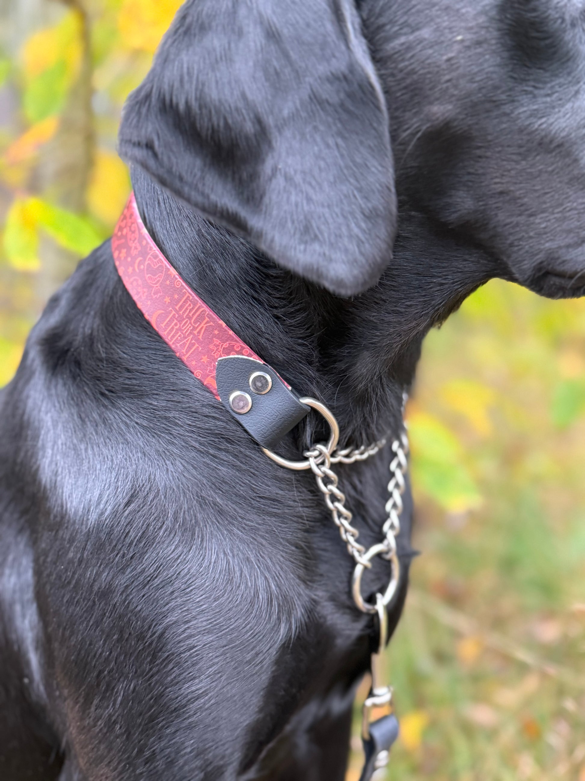 VĂ„rt limited edition halvstryphalsband i biothane/PVC Ă€r inspirerat av höstens fĂ€rger och Halloween â en unik kombination av elegans och lekfullhet. Halsbandet Ă€r handgjort med noggrant utvalda detaljer och tillverkat i slitstarkt, vattentĂ„ligt material som hĂ„ller sig snyggt oavsett vĂ€der. Den rostfria kedjan ger dig trygg kontroll, medan den mjuka ytan ligger behagligt mot hundens pĂ€ls.
