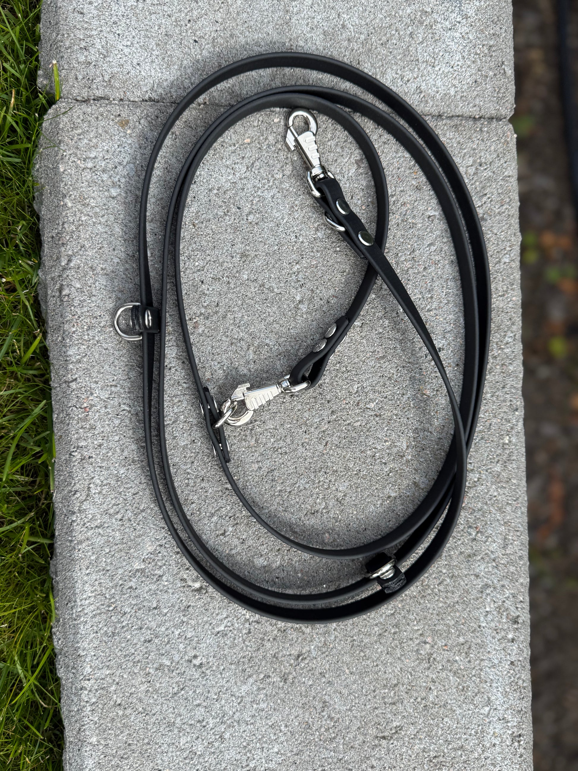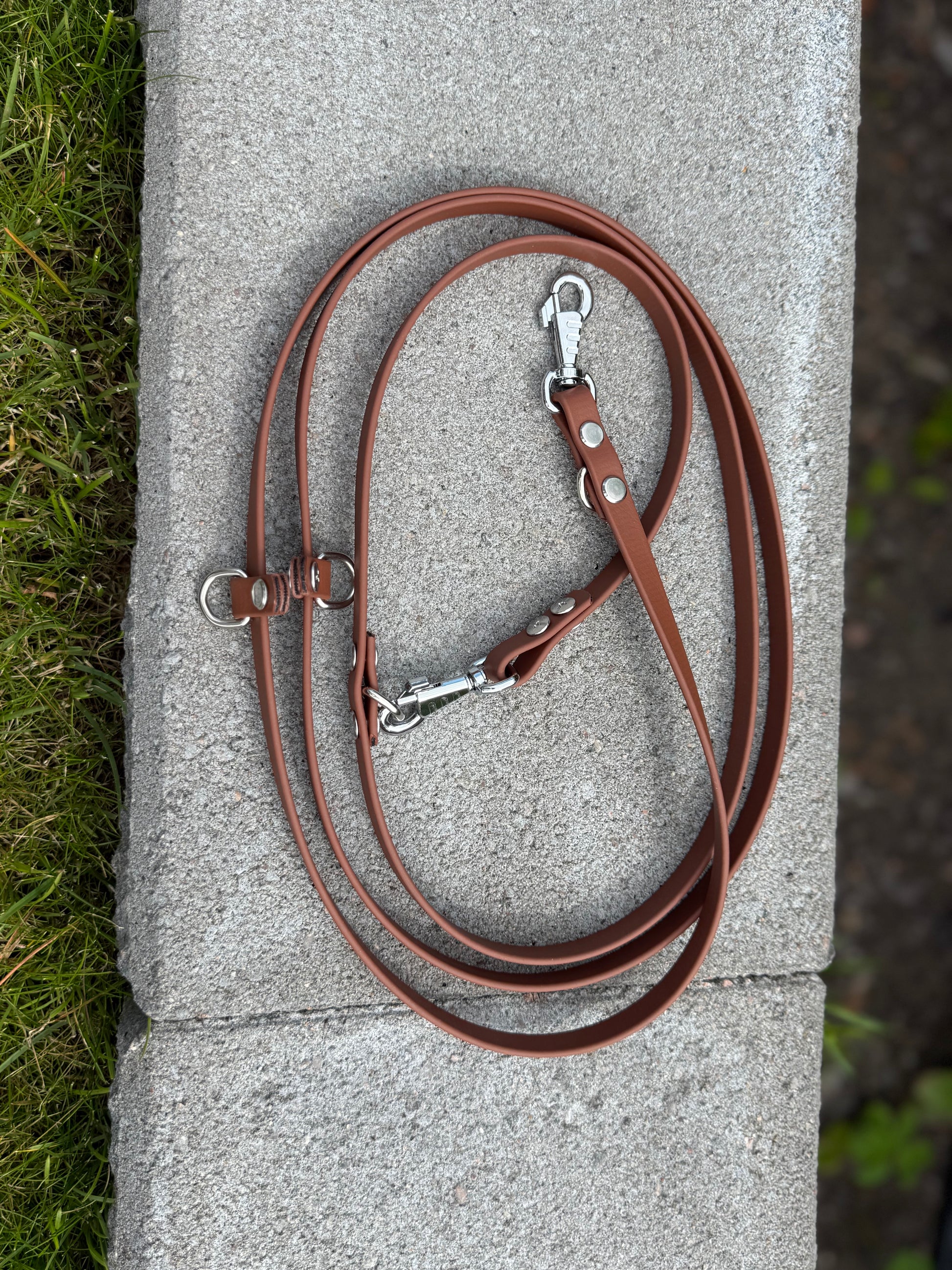 Det här slitstarka och vattentåliga kopplet i biothane är designat för att passa din vardag, oavsett hur du väljer att gå ut med din hund. Använd det som ett vanligt handhållet koppel, runt axeln, runt midjan eller med hunden lös och kopplet runt dig - för en bekväm och flexibel promenad med händerna fria.