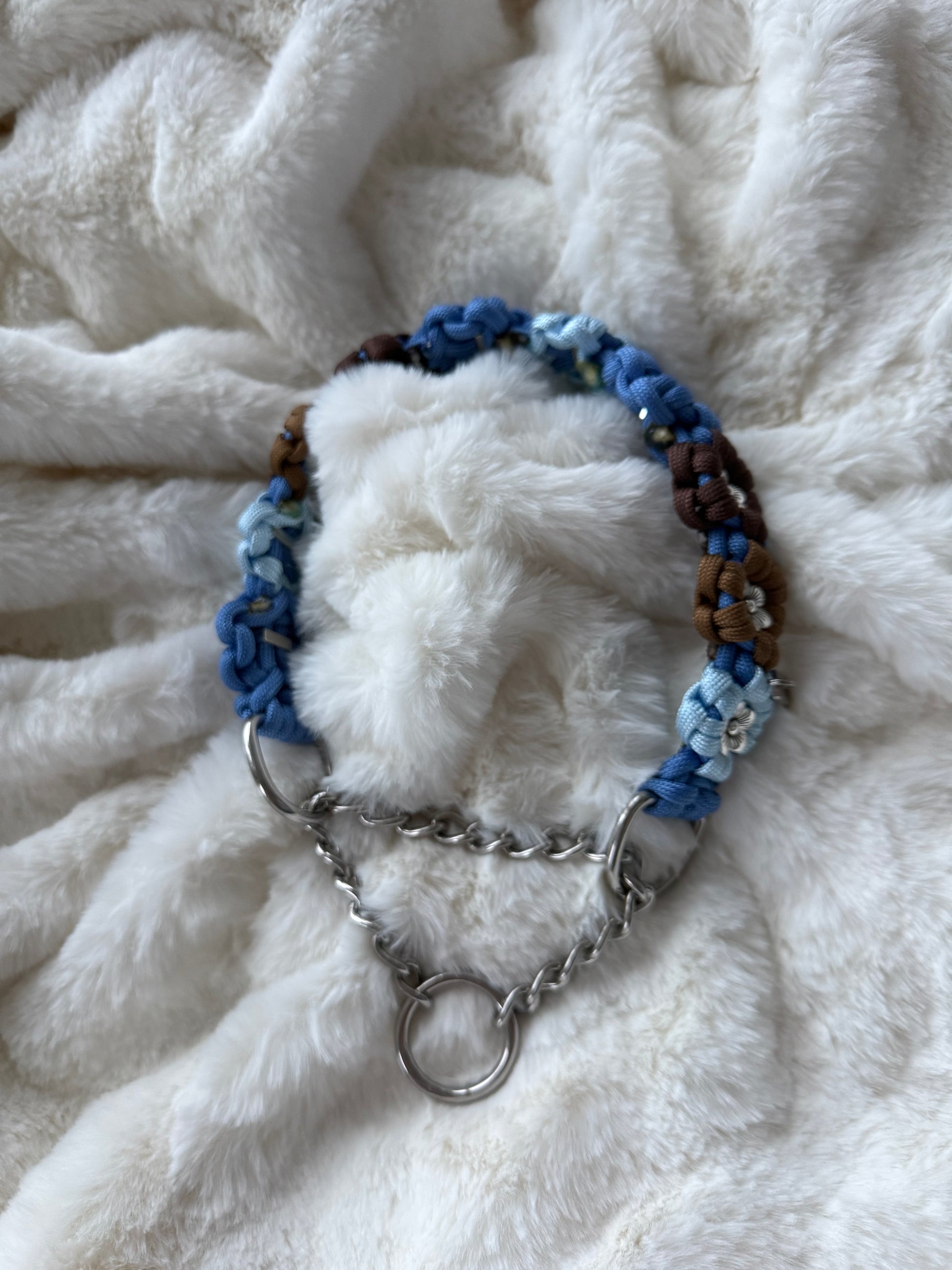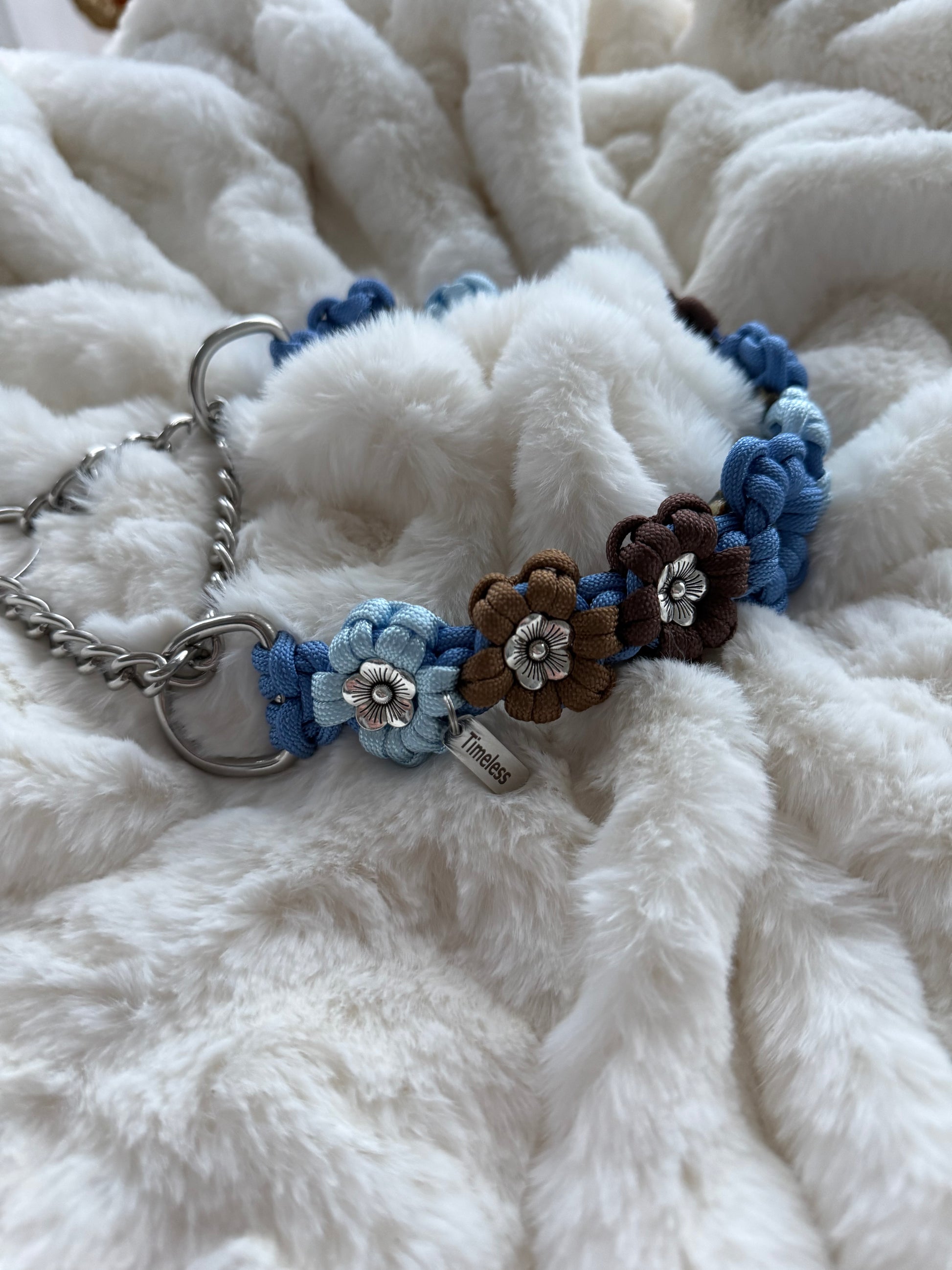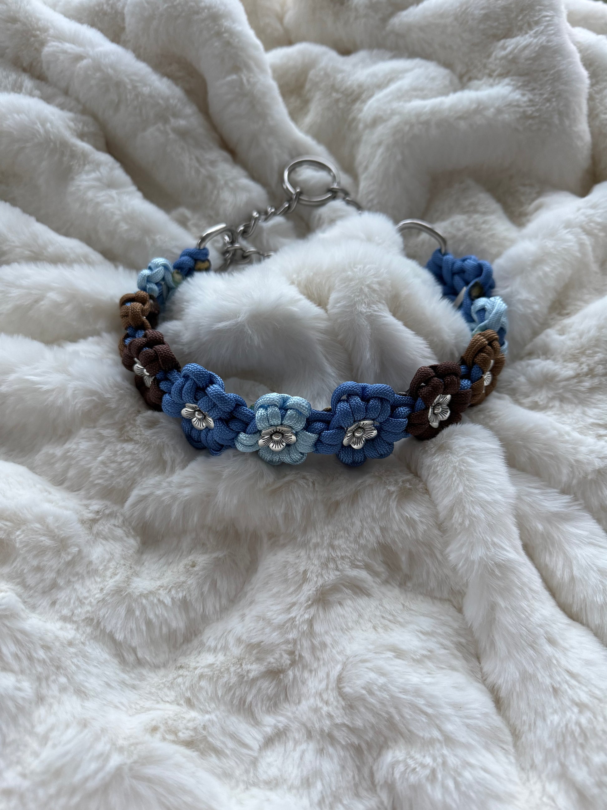 Våra handgjorda paracordhalvstryp är skapade med fokus på både stil och kvalitet. Varje halsband flätas för hand med stark paracord och dekoreras med vackra blommor. Resultatet är ett halsband som inte bara är hållbart – utan också ett smycke för hunden. Den rostfria kedjan ger extra kontroll och hållbarhet.
