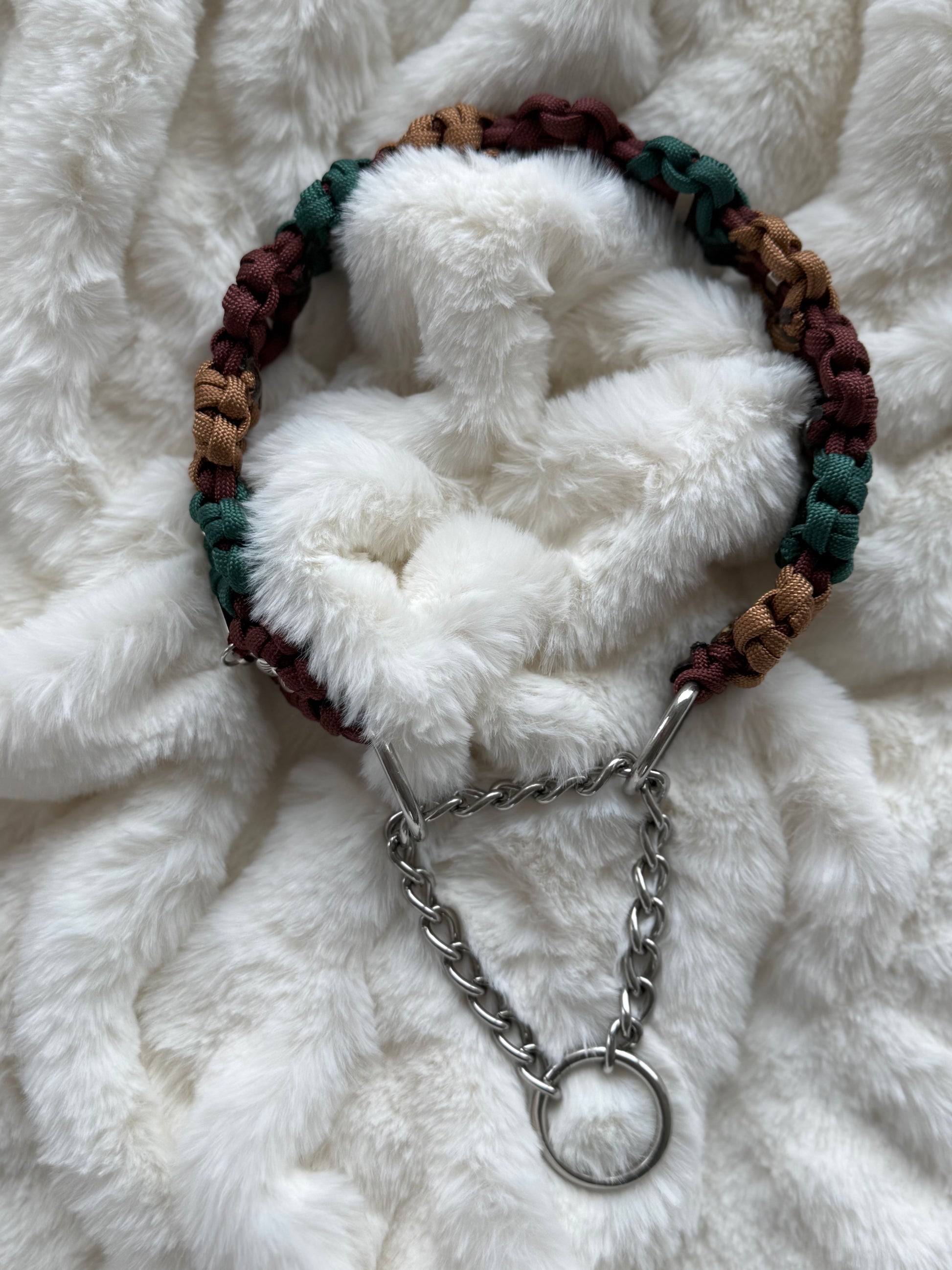 Våra handgjorda paracordhalvstryp är skapade med fokus på både stil och kvalitet. Varje halsband flätas för hand med stark paracord och dekoreras med vackra blommor. Resultatet är ett halsband som inte bara är hållbart – utan också ett smycke för hunden. Den rostfria kedjan ger extra kontroll och hållbarhet.